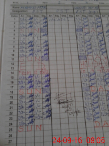 | Monitoring Date: 24-09-2016 | Start Time: 24-09-2016 07:41 AM | End Time: 24-09-2016 08:09 AM | Name of MEA: Ay**** Me**** BN**** 13 | |