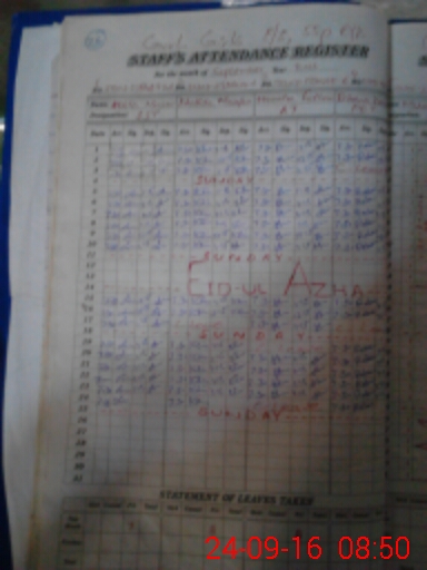 | CNIC | Full Name | Designation | R/C | Absence During Last Calender Month |