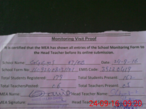 | Attendance Register | Head Teacher | MEA with School | Visit Proof |