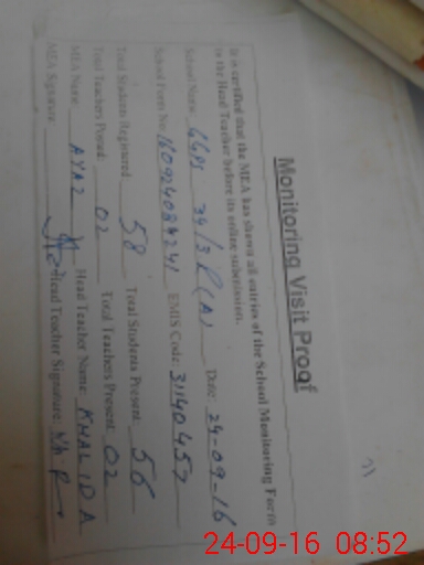 | Certified that this School was Inspected by the Undersigned MEA/DMO Today and the Information Stated Above is as Per Record. | |||||