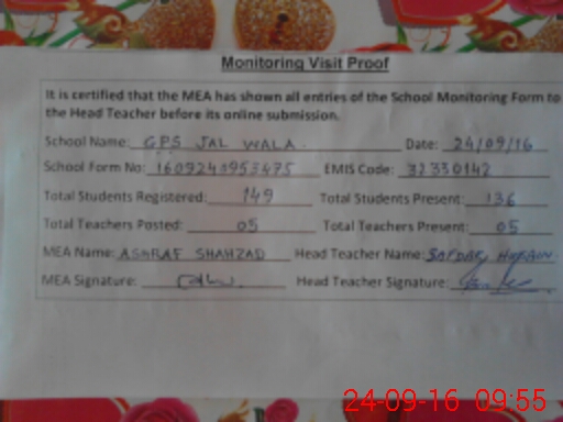 | EMIS Code: 32330142 | Name of School: GPS JAL WALA | |||