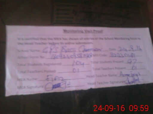 | Attendance Register | Head Teacher | MEA with School | Visit Proof |