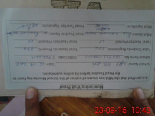 | Monitoring Date: 23-09-2016 | Start Time: 23-09-2016 10:00 AM | End Time: 23-09-2016 10:45 AM | Name of MEA: Kh**** Ha**** (R**** | |