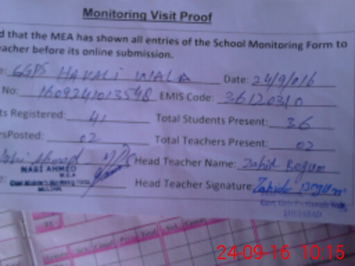 | Certified that this School was Inspected by the Undersigned MEA/DMO Today and the Information Stated Above is as Per Record. | |||||