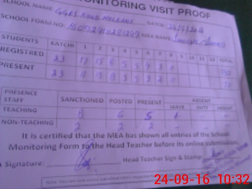 | Attendance Register | Head Teacher | MEA with School | Visit Proof |