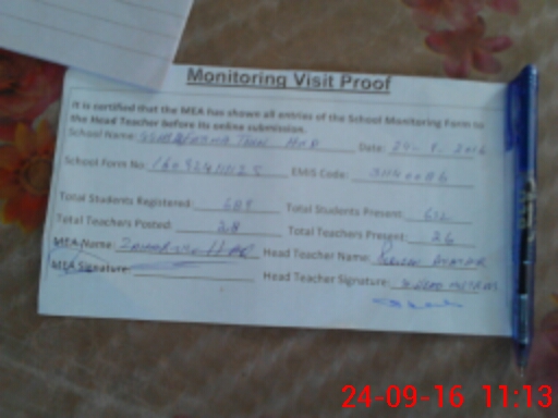 | Attendance Register | Head Teacher | MEA with School | Visit Proof |