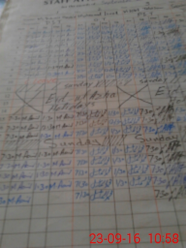 | CNIC | Full Name | Designation | R/C | Absence During Last Calender Month |