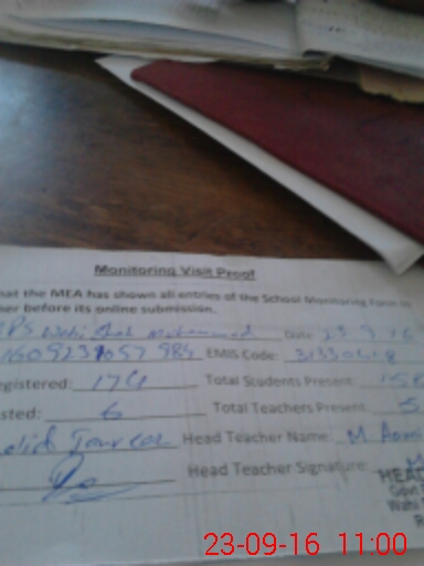 | Attendance Register | Head Teacher | MEA with School | Visit Proof |