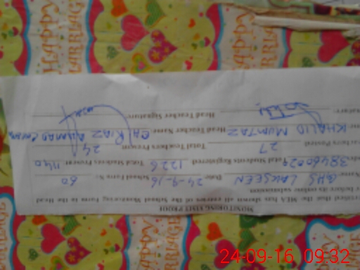 | Name: MU**** KH**** ME**** Designation: (School Headmaster's/Headmistress's) Principal Phone/Cell Number: 03**** |