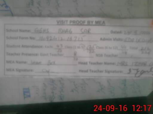 | EMIS Code: 32430018 | Name of School: GGHS BHAGSAR | |||