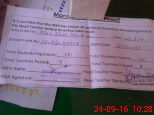 | Attendance Register | Head Teacher | MEA with School | Visit Proof |