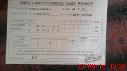 | Attendance Register | Head Teacher | MEA with School | Visit Proof |