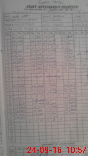 | CNIC | Full Name | Designation | R/C | Absence During Last Calender Month |