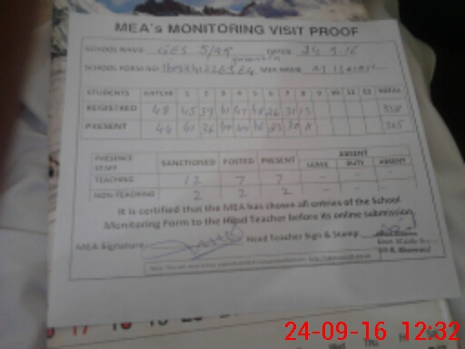 | Certified that this School was Inspected by the Undersigned MEA/DMO Today and the Information Stated Above is as Per Record. | |||||