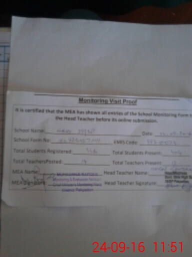 | Certified that this School was Inspected by the Undersigned MEA/DMO Today and the Information Stated Above is as Per Record. | |||||