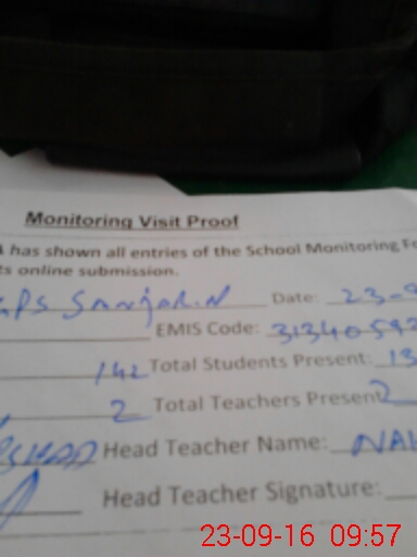 | Attendance Register | Head Teacher | MEA with School | Visit Proof |