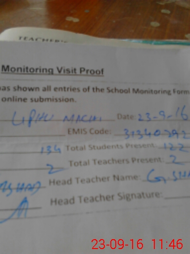 | Attendance Register | Head Teacher | MEA with School | Visit Proof |