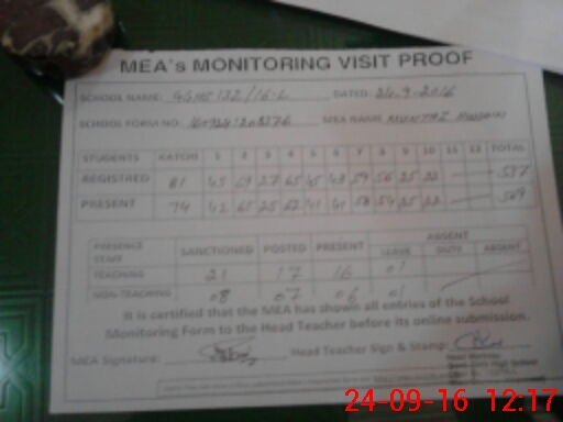 | Attendance Register | Head Teacher | MEA with School | Visit Proof |