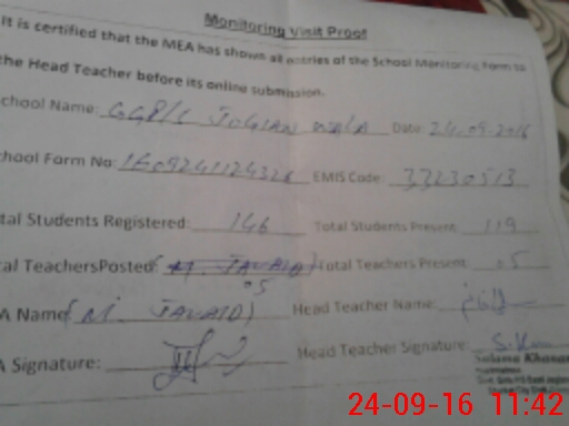 | EMIS Code: 33230513 | Name of School: GGPS JOGIAN WALA | |||