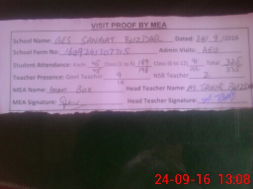 | EMIS Code: 32430044 | Name of School: GHS SANGAT BUZDAR | |||