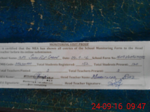 | Attendance Register | Head Teacher | MEA with School | Visit Proof |