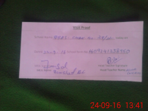 | Attendance Register | Head Teacher | MEA with School | Visit Proof |