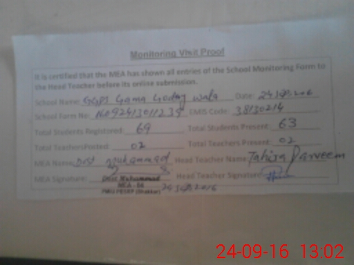| EMIS Code: 38130214 | Name of School: GGPS GAMA GODEY WALA | |||