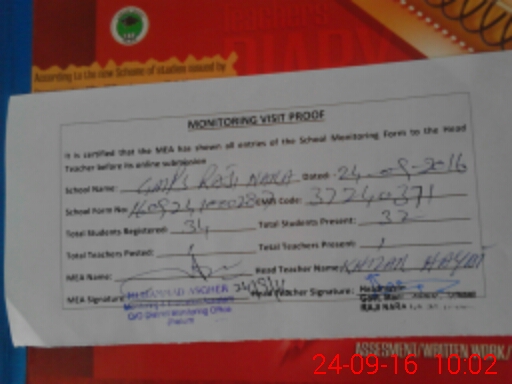 | Certified that this School was Inspected by the Undersigned MEA/DMO Today and the Information Stated Above is as Per Record. | |||||