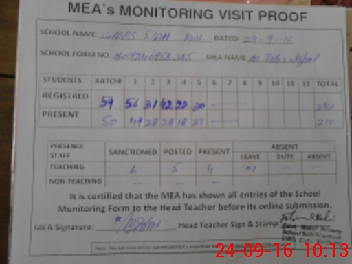 | Attendance Register | Head Teacher | MEA with School | Visit Proof |