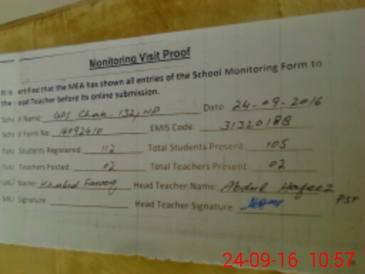| Attendance Register | Head Teacher | MEA with School | Visit Proof |