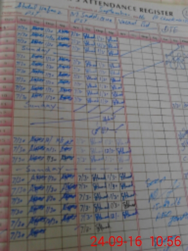 | CNIC | Full Name | Designation | R/C | Absence During Last Calender Month |
