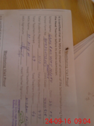 | Attendance Register | Head Teacher | MEA with School | Visit Proof |