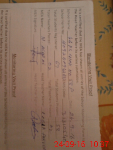 | Monitoring Date: 24-09-2016 | Start Time: 24-09-2016 09:42 AM | End Time: 24-09-2016 10:38 AM | Name of MEA: Mu**** As**** KP**** | |