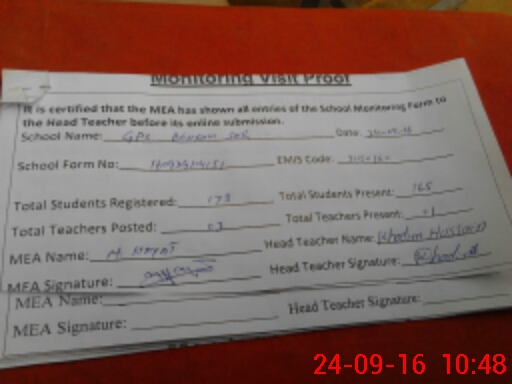| Certified that this School was Inspected by the Undersigned MEA/DMO Today and the Information Stated Above is as Per Record. | |||||