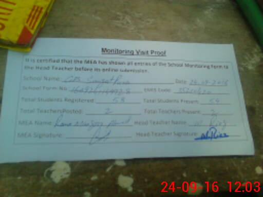 | Certified that this School was Inspected by the Undersigned MEA/DMO Today and the Information Stated Above is as Per Record. | |||||
