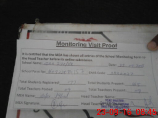 | Attendance Register | Head Teacher | MEA with School | Visit Proof |