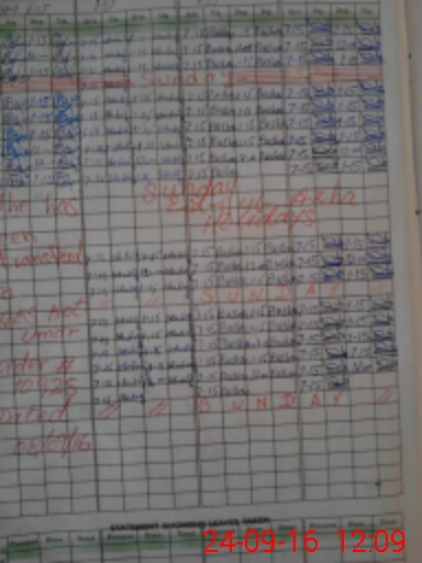 | CNIC | Full Name | Designation | R/C | Absence During Last Calender Month |