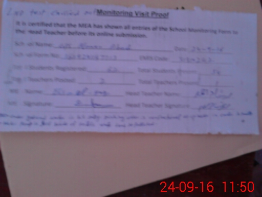 | Certified that this School was Inspected by the Undersigned MEA/DMO Today and the Information Stated Above is as Per Record. | |||||