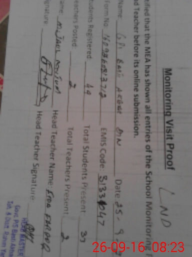 | Attendance Register | Head Teacher | MEA with School | Visit Proof |