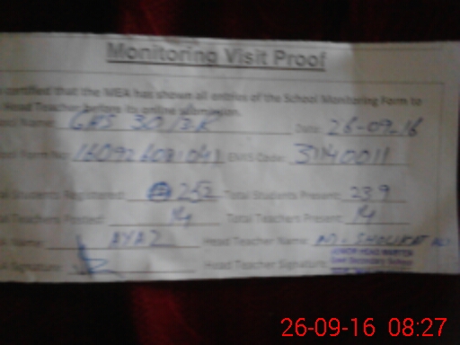 | Attendance Register | Head Teacher | MEA with School | Visit Proof |