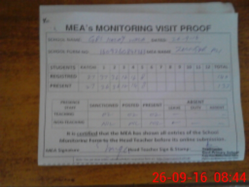 | Attendance Register | Head Teacher | MEA with School | Visit Proof |