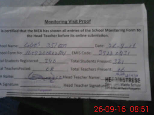 | Attendance Register | Head Teacher | MEA with School | Visit Proof |