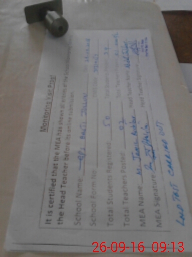 | Certified that this School was Inspected by the Undersigned MEA/DMO Today and the Information Stated Above is as Per Record. | |||||