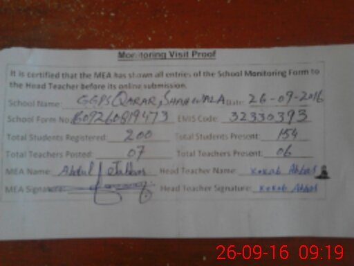 | EMIS Code: 32330393 | Name of School: GGPS QARAR SHAH WALA | |||