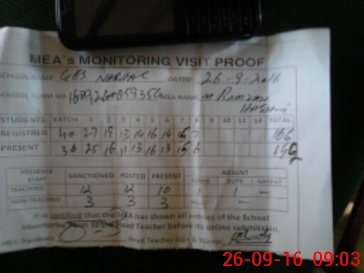 | Attendance Register | Head Teacher | MEA with School | Visit Proof |