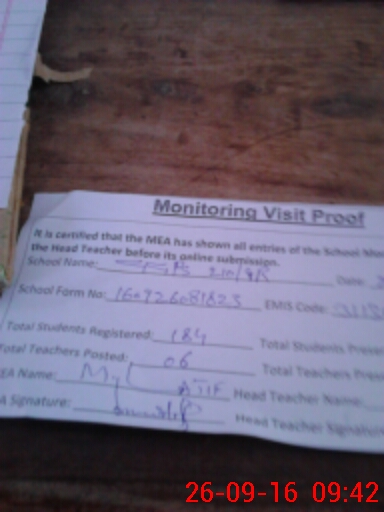 | Attendance Register | Head Teacher | MEA with School | Visit Proof |