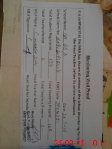 | Certified that this School was Inspected by the Undersigned MEA/DMO Today and the Information Stated Above is as Per Record. | |||||