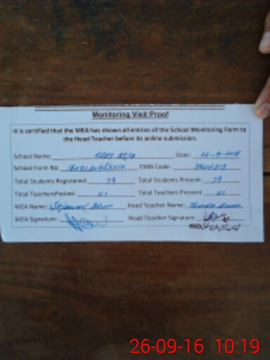 | Attendance Register | Head Teacher | MEA with School | Visit Proof |