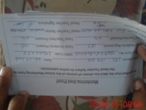 | Name: MU**** RA**** Designation: (School Headmaster's/Headmistress's) PST Phone/Cell Number: 03**** |
