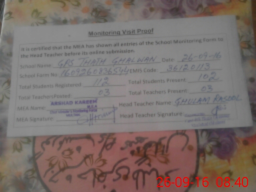 | EMIS Code: 36120113 | Name of School: GPS THATH GHALWAN P/O THATH GHAWAN | |||